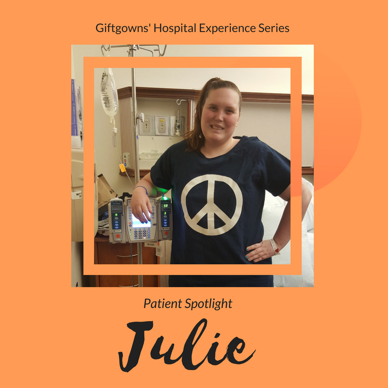 Up next in Giftgown's Hospital Experience Series is Julie! Julie is battling a number of illnesses, but keeps on fighting with a smile. We're so excited to be able to share Julie's story with you, along with her tips and tricks for staying positive during a hospital stay!
